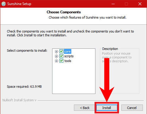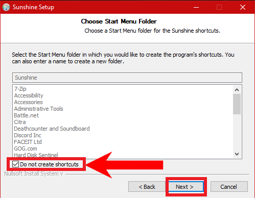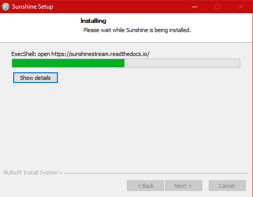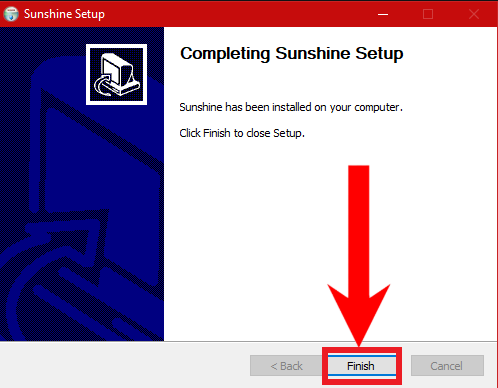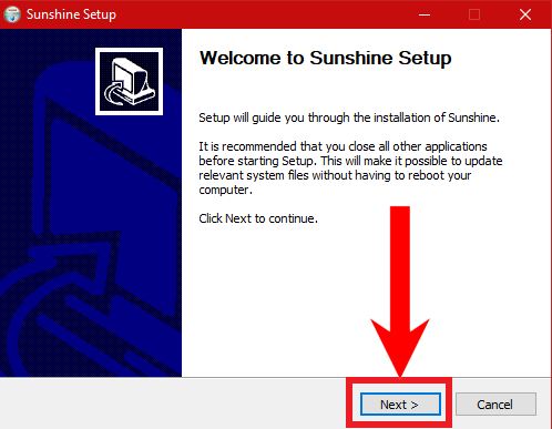 Installing Sunshine through the Setup