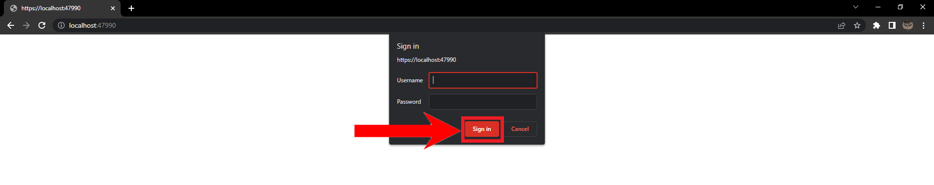 Consequently, the page will reload and ask you to login. Enter the username and password you created previously, and click on Sign In.
