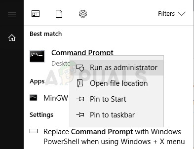 - Search for “Command Prompt”, right-click on it, and select the “Run as administrator” option. Copy and paste the following command and make sure you click Enter afterward: