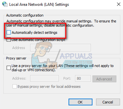 The problems seem to emerge from the incompatibility with the Automatically Detect Settings option. It is always enabled by default when you start your Windows and doesn’t change unless you change it manually. This is basically a compatibility option and disabling it doesn’t bring about much change to anyone’s experience. You can always enable it if this doesn’t work for you.