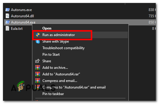 - Once it’s extracted, Open executable named “Autoruns.exe” as an administrator.