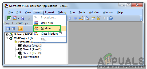 Clicking on “Insert” and select “Module” - Chose “Edit” where the cursor is flashing and select “Paste“.