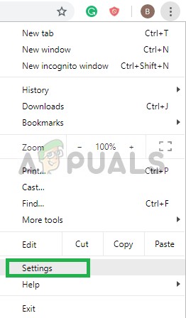 Opening the Chrome Menu from the top right-hand side - From the menu, select “Settings”