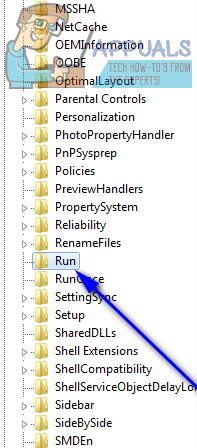 HKEY LOCAL MACHINE > SOFTWARE > Microsoft> Windows > CurrentVersion - In the left pane of the Registry Editor, click on the Run sub-key under the CurrentVersion key to have its contents displayed in the right pane.