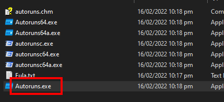 - Go to Extracted folder, open Autoruns.exe