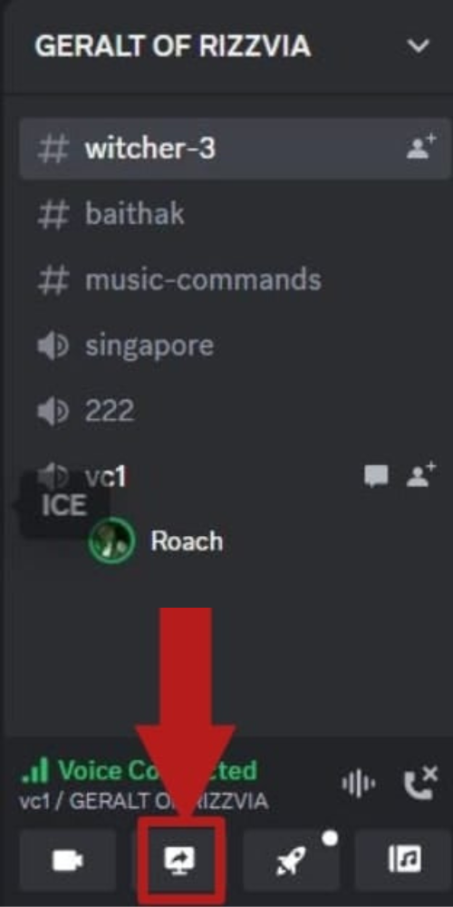 - Join a voice channel. Select the Screen Share option.