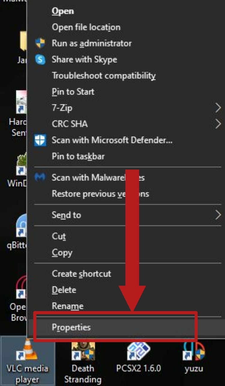 - On your desktop, find the VLC icon and right-click on it. From the menu, select Properties.