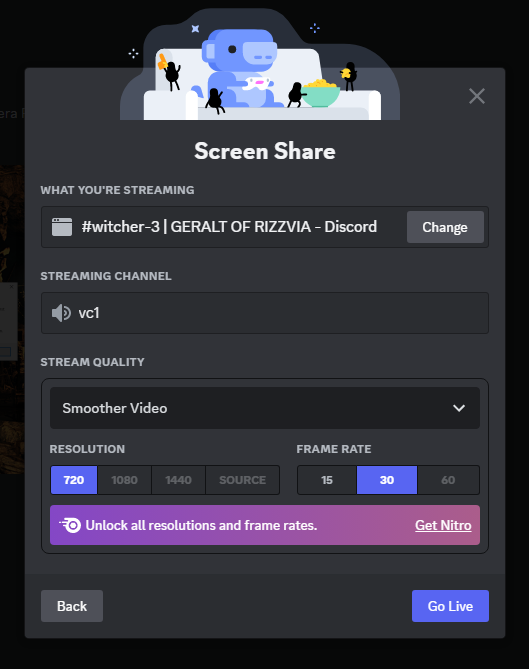 Starting the stream on Discord