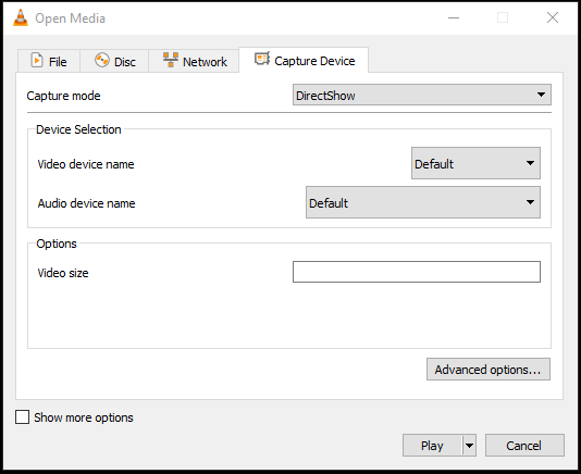 Modify the settings so that the capture card is being streamed - Now click on the Show more options checkbox.