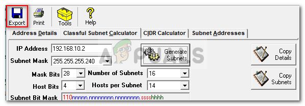 Copying Subnets - If you wish to import the addresses to an Excel file or any other, you can do so by going to File and then moving your cursor over to Export or by simply clicking the Export icon.
