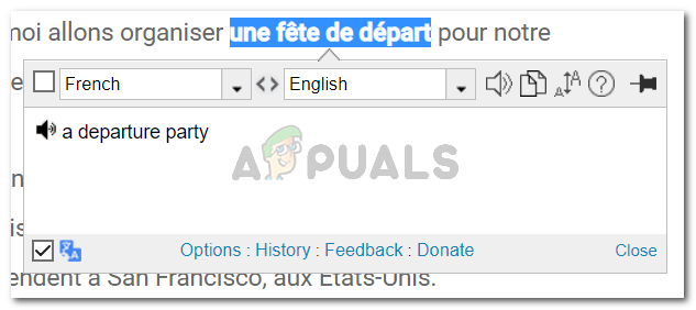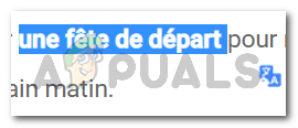 I selected the French text. Now there are two ways to go about it. When you select a text on a website, the icon for Google Translate automatically appears there recognizing the words to be in a foreign language. You can click on this icon to view what this means, just how I simply clicked on this icon, and the app translated the selected text automatically.