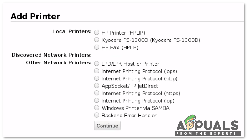 - Choosing Your Printer: After logging in a list of currently connected printers will be shown. Some printer details will also be shown as the mode of connectivity (Either by USB cable or Wifi). We will find our printer on that list. We will select our printer and then click on continue.
