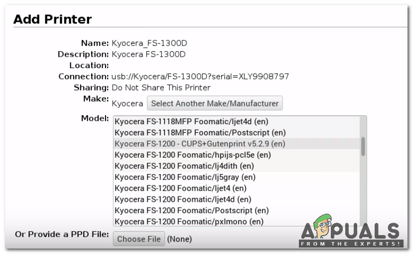 Defining Details - Selecting The Driver: A driver needs to be selected now. Most probably Pi will identify suitable driver itself – if not we will scroll through the list of drivers and choose an appropriate one. At this point click on Add Printer and select any default preferences we may have. Click Set Default Options and now the difficult part is done.