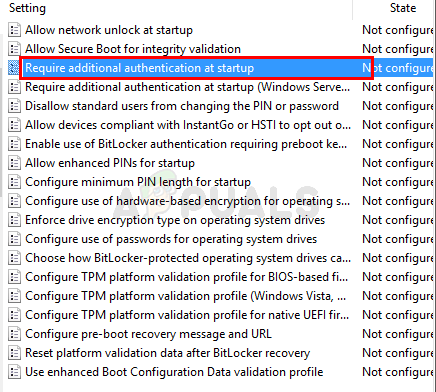 - Double click Require additional authentication at startup from the right pane