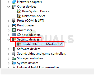 - Go through the device manager list and look for the entry named Security Devices