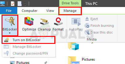 Turn on BitLocker via Manage option