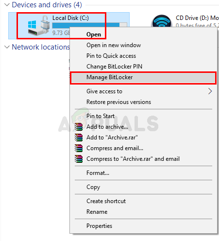 - Right click your C drive and select Manage BitLocker
