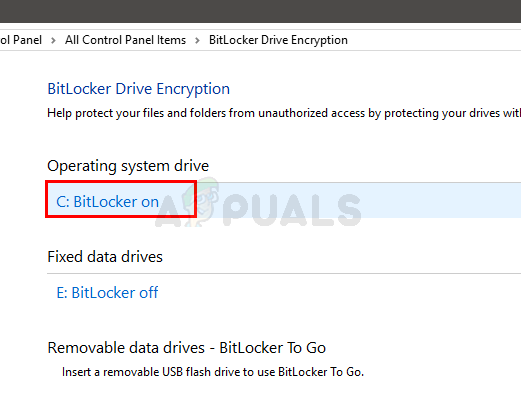 - Click Manage BitLocker