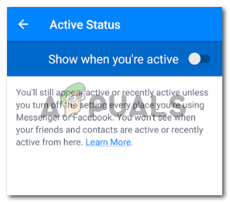 The method for turning off your Active status from the application would be slightly different since it is an application on your phone. Follow the steps as mentioned below to turn off your Active Status for Facebook Messenger.