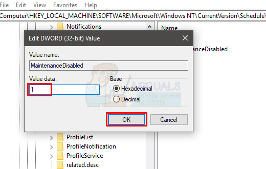 - Now, double click MaintenanceDisabled entry and enter 1 in its value data Click Ok