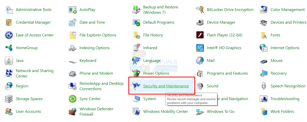 - Select Security and Maintenance