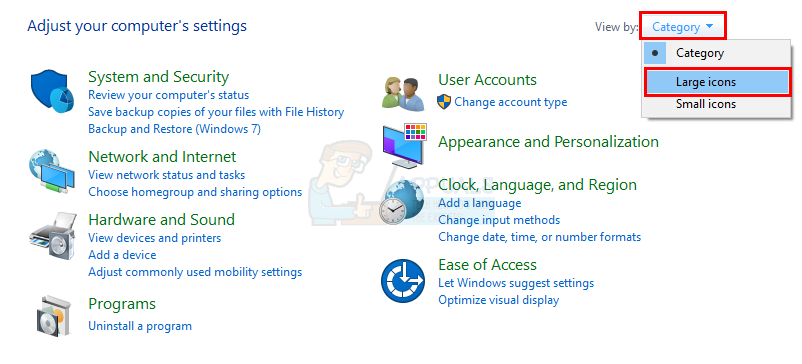 - Select Large icons from the drop down menu in View By section