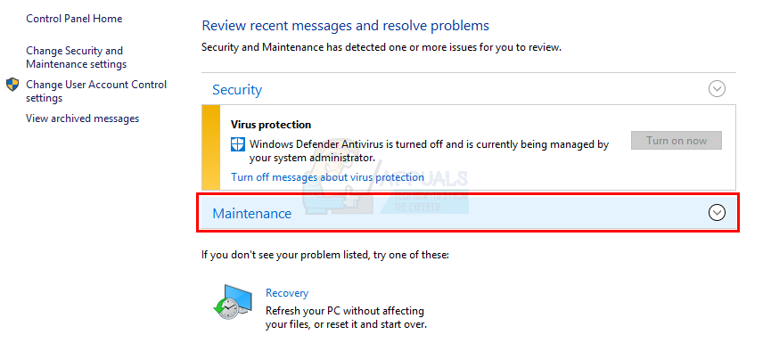 Method 1: Change MaintenanceDisabled Registry Key