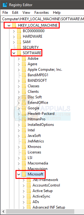 - Locate and double click SOFTWARE from the left pane