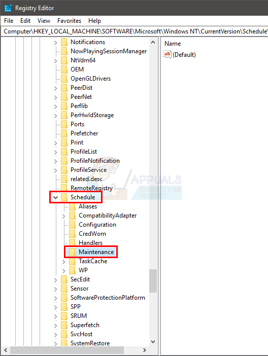 - Now, navigate to this address HKEY_LOCAL_MACHINE\SOFTWARE\Microsoft\Windows NT\CurrentVersion\Schedule\Maintenance. If you don’t know how to navigate there, then follow the steps given below