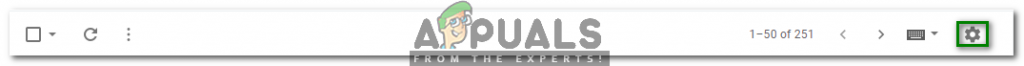 - Once you manage to log in to Gmail successfully, click on the Gear icon located at the top right corner of your Gmail window as shown in the following image: