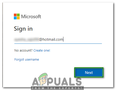 - Now type your Hotmail ID below the “Sign in” label and then click on the Next button as highlighted in the image shown above.