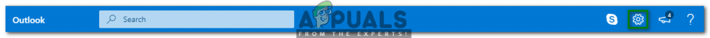 - Once you manage to sign in to Hotmail successfully, click on the Gear icon located at the right corner of the ribbon labeled as Outlook as shown in the following image: