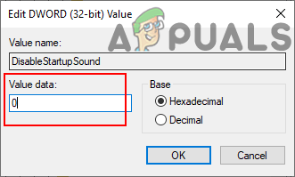 Creating a new value - Double-click on the DisableStartupSound value and it will open a small dialog. Now change the value data to 0, it will disable the value and turn ON the startup sound.