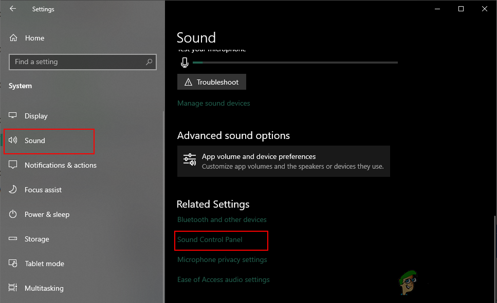Opening the Settings app - Select the Sound section in the left pane and then scroll down. Click on the Sound Control Panel under the Related Settings.