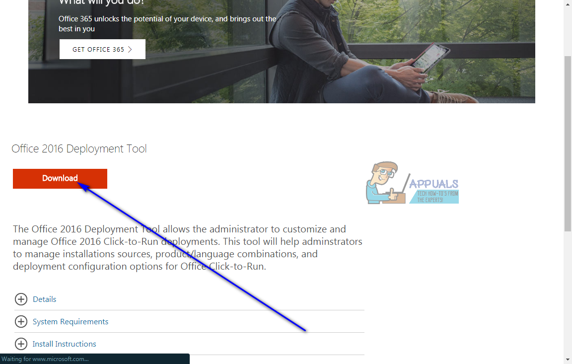 - Go here and click on Download to start downloading the Office 2016 Deployment Tool.