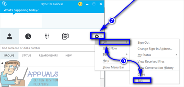 - Hover over File and click on Exit to close Skype for Business.