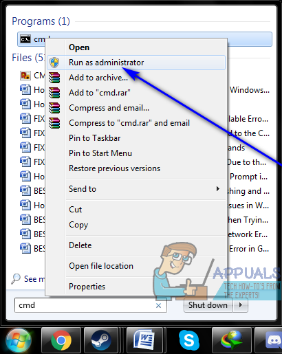 - Launch an elevated Command Prompt that has administrative privileges. If you’re using Windows 7, open the Start Menu, search for “cmd“, right-click on the search result titled cmd and click on Run as administrator. If you’re using Windows 8. 8.1 or 10, simply right-click on the Start Menu to open the WinX Menu and click on Command Prompt (Admin).
