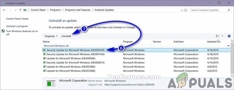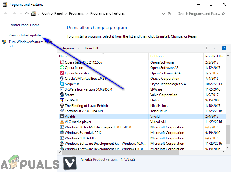 First and foremost, the simplest method that you can use to uninstall Windows updates on a Windows computer is to take a look at all of the Windows updates installed on the computer via the Programs and Features utility (if you are using Windows 7, 8 or 8.1) or the Windows Update utility (if you are using Windows 10), and then uninstall the offending update(s). If you would like to apply this solution, you need to: