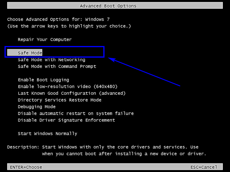 Boot your computer up, and as it starts up, press the F8 key on your keyboard – doing so will grant you access to your computer’s Advanced Boot Options menu. It might take you a couple tries to get it right, but once you are in your computer’s Advanced Boot Options menu, you can opt to have your computer boot into Safe Mode.