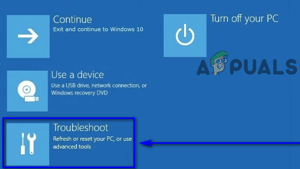 - When your computer boots up, it will display a screen with three options. Click on Troubleshoot.