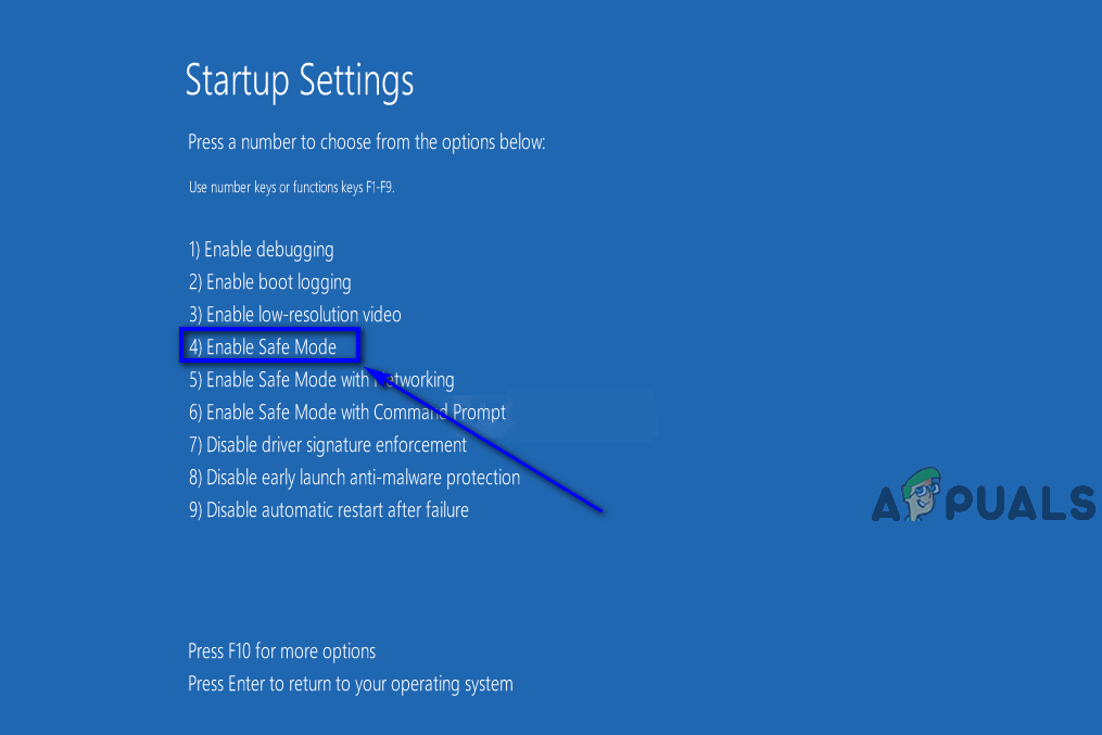 - When your computer boots up, you will be presented with a list of 9 startup options – each of which can be selected by pressing the corresponding Function key. The option you want is Enable Safe Mode, so press its corresponding Function key. For example, if the Enable Safe Mode option is option 4, you are going to have to press F4 key to boot into Safe Mode.