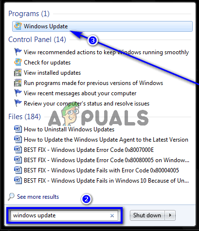 - Search for “windows update“.