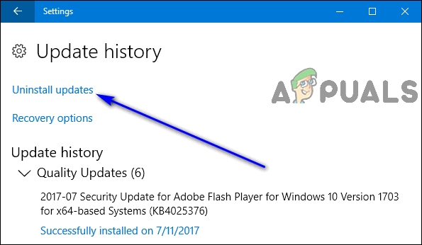 - Click on Uninstall updates.