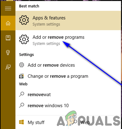 - Search for “add or remove programs“.