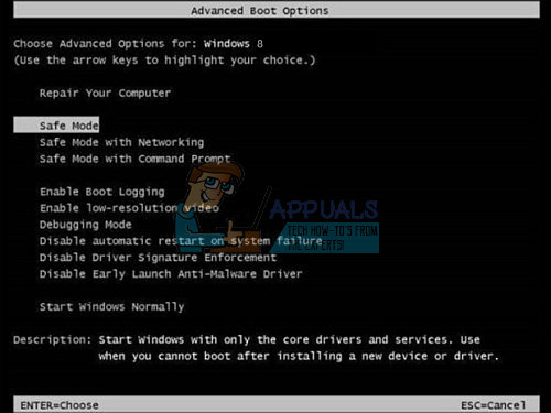 - Restart your computer and press the F8 key repeatedly as soon as you see the BIOS information on your screen. Pressing the F8 key allows you to access the “Safe Mode” of your computer. Select “Safe Mode” and hit “Enter.”