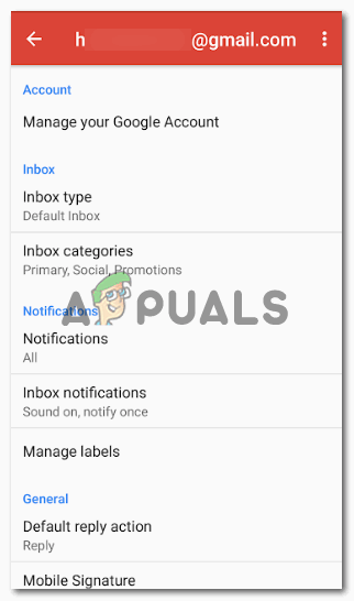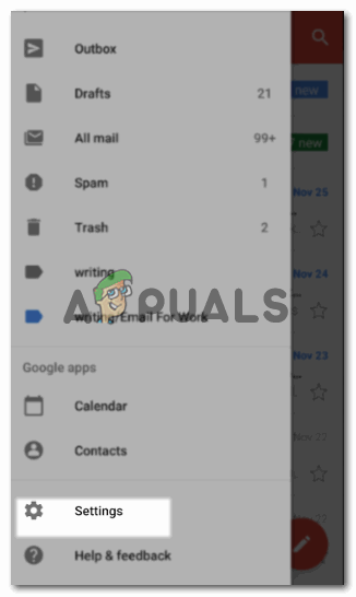 Open your Gmail application from your phone - Click on the settings option which is the three horizontal lines on the left. When you click on this, scroll down and click on the options for settings as highlighted in the image below.