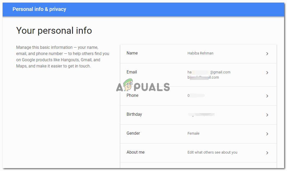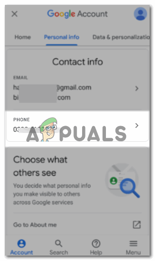 Click on Personal Info. This is where you will find the number that you have entered - After clicking on personal info, you have to scroll down the same window until you find the option for ‘phone’, as we did earlier when changing the number from a laptop.