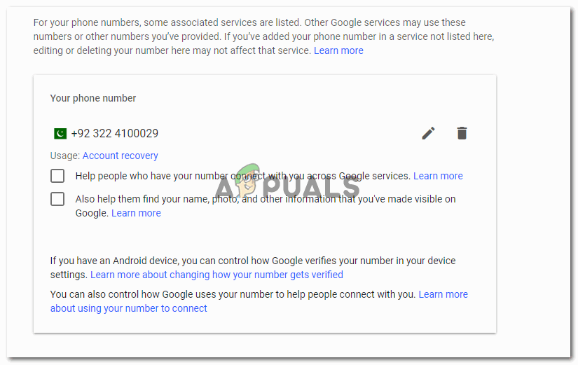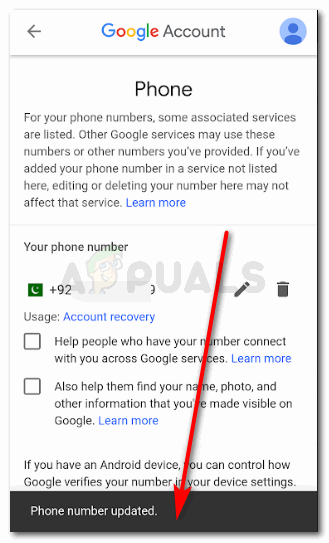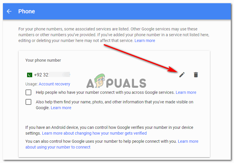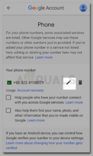 - Your phone number will appear on the screen now with an edit and a delete button right on the opposite side.