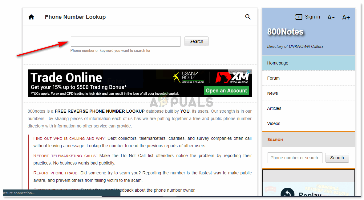 - You enter a phone number in the space provided, as highlighted by the arrow in the previous image. You can type a number that has called you a number of times and you don’t recognize them and feel that this is just another spam call.