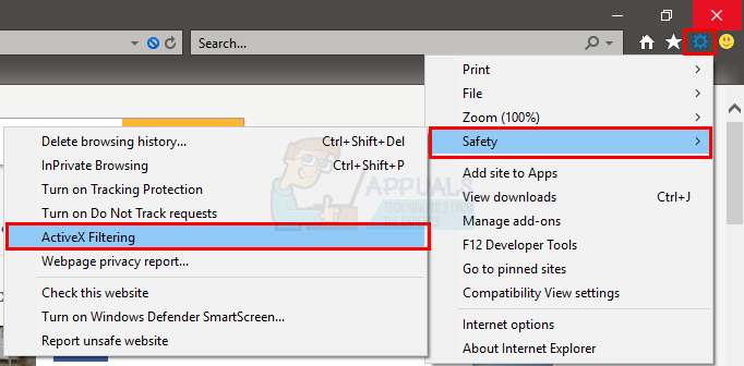 ActiveX filtering is a feature introduced in Internet Explorer 9. This feature is also available in all the versions of Internet Explorer that came after the 9th version. Websites that you visit are prevented from installing new ActiveX controls and running the existing ActiveX controls. ActiveX controls are browser plugins that add many rich features to the website. Many of ActiveX controls are written by third party and their safety and quality cannot be guaranteed by the Microsoft. That’s why Microsoft allows you to make use of the ActiveX Filtering and to block ActiveX controls for all the sites on your browser. You can turn the ActiveX controls for the sites you can trust.